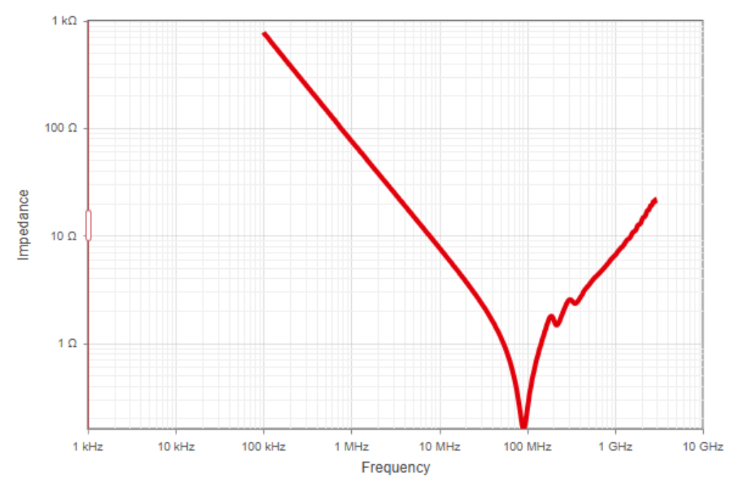 Figure 3 – Datasheet impedance curve of 2200 pF capacitor
